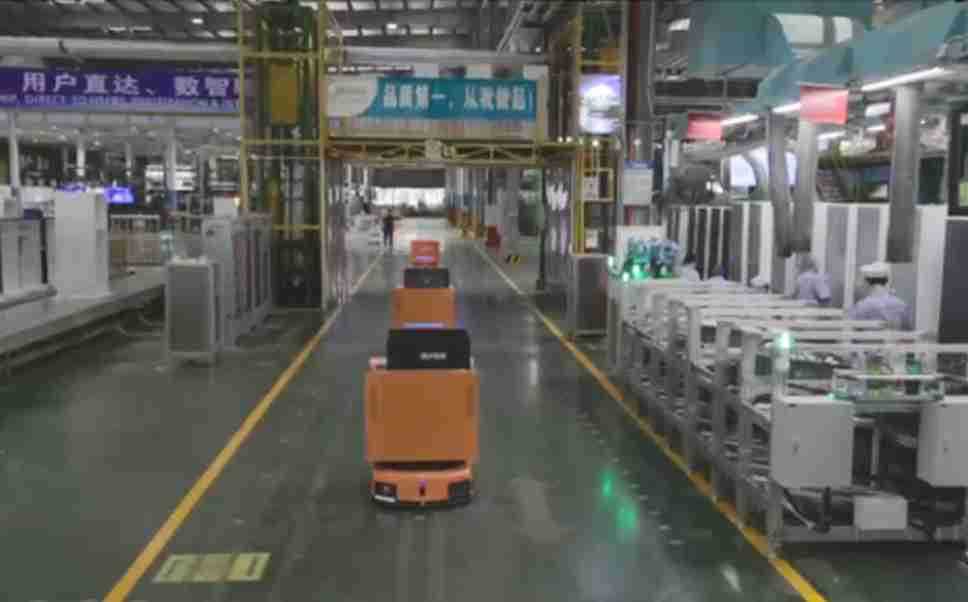 为车载冰箱物流配送打造的智能解决方案,,,包含产中物流通过潜伏举升AMR搬运至线边,,产后成品物流智能仓储,,,流程包含产中物流智能齐套入库,,,线边安灯叫料AMR智能配送至线边,,,成品入库、、、出库,,,,通过无人堆高车机器人,,,,智能仓储管理替代人工作业管理,,实现更高存储、、、、更高效率、、、、更具柔性化的解决方案。。